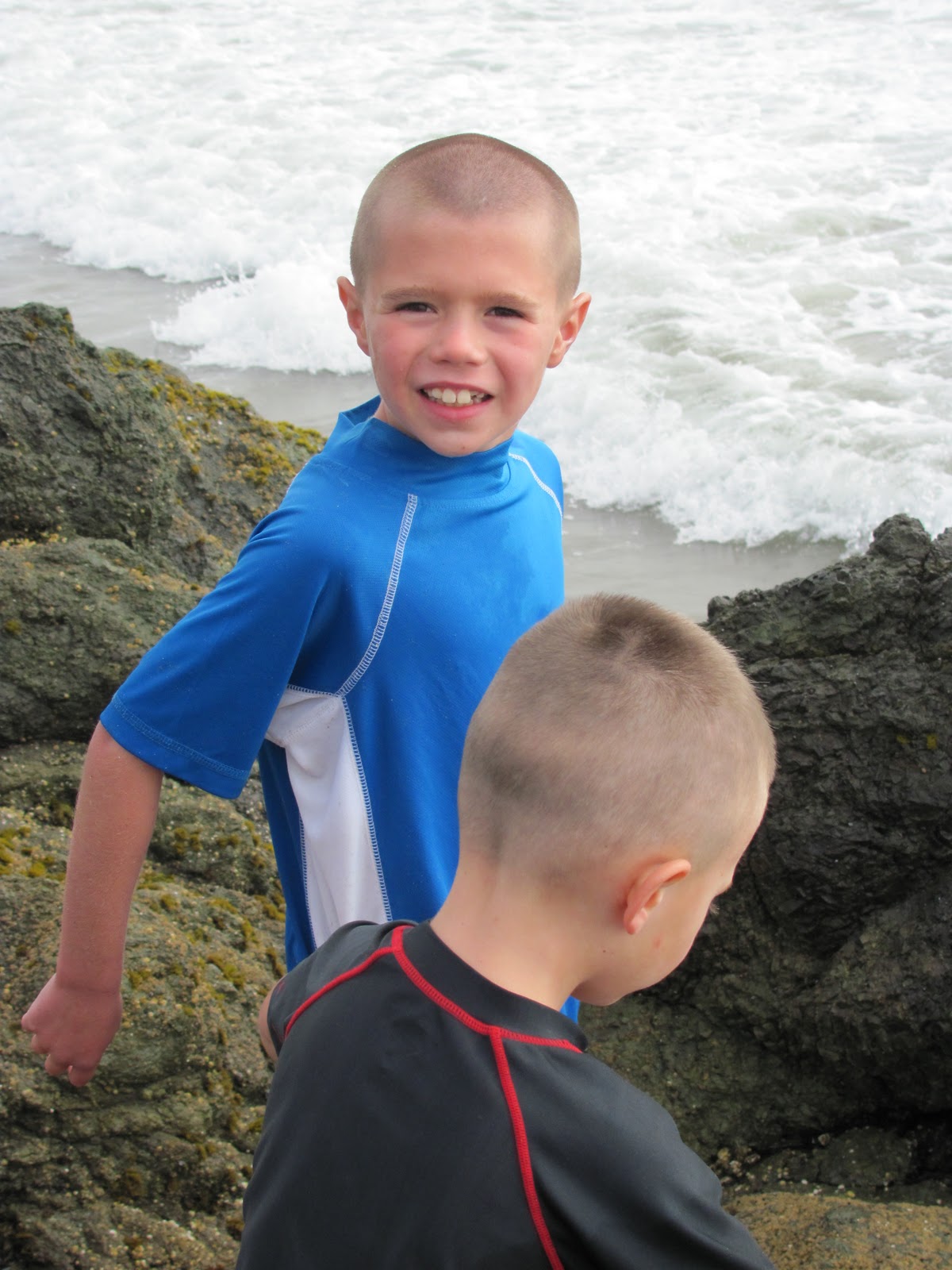 Then we headed back to the beach house. I took the boys on a long beach walk to see pig rock, bird poop rock, and the tide pool one more time. Some pictures from our walk.....
